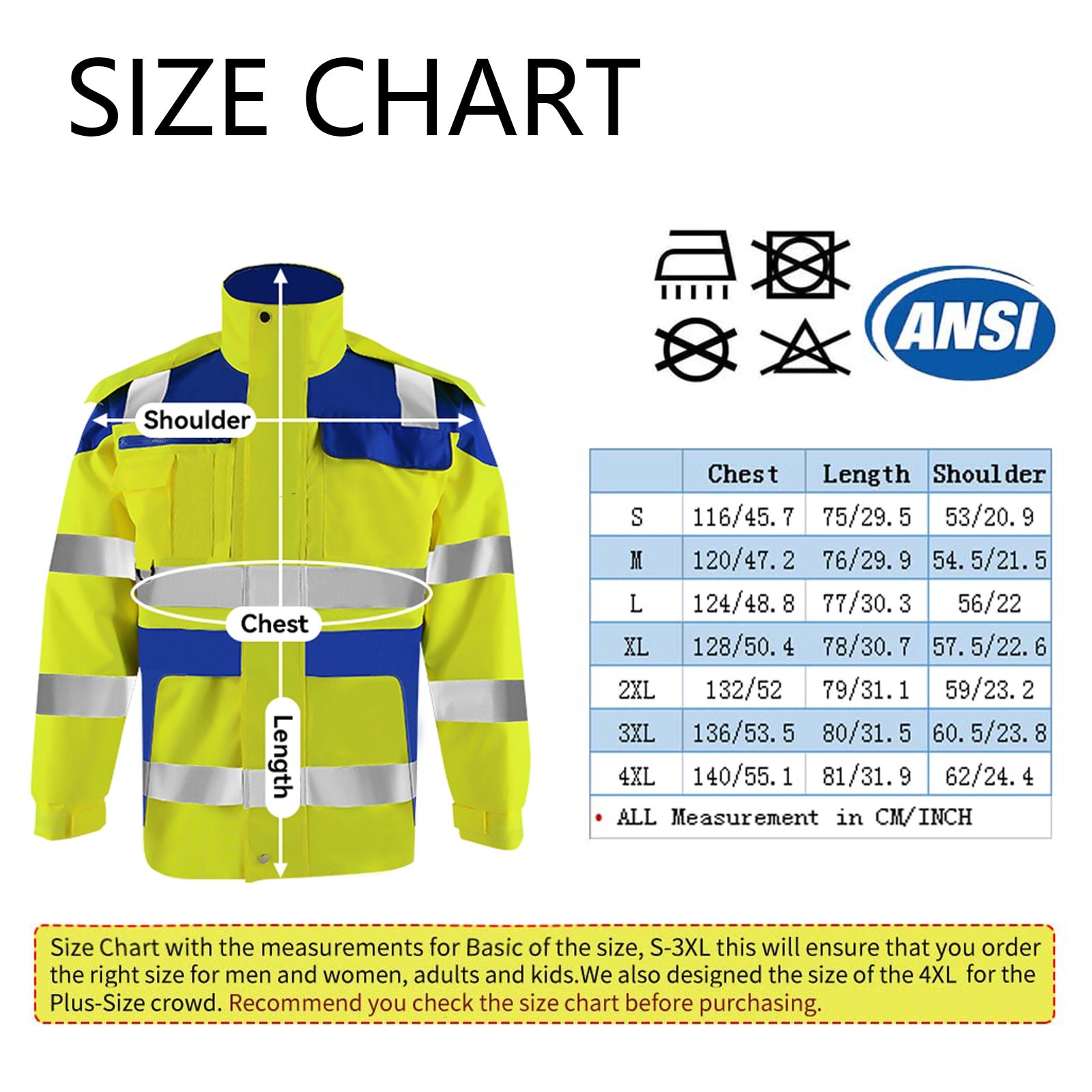 - NEON GLOW COLORED: Jacket comes in fluorescent Yellow with a Black bottom to conceal soiling. It offers superior visibility and safety on the job, and is available in men’s sizes Small to 5XL.