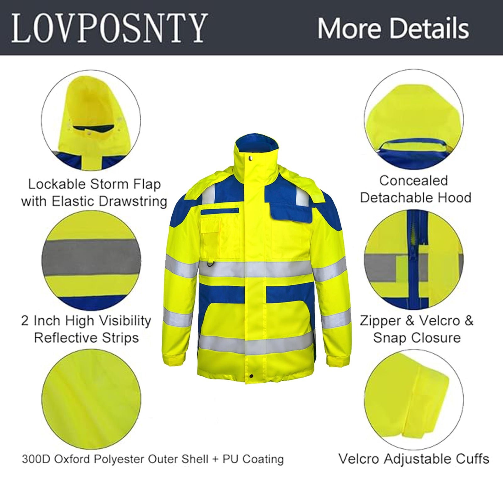 - WATERPROOF & REFLECTIVE: Silver reflective tape provides high visibility. Jacket is 100% waterproof, windproof, has a removable hood with concealed pouch, and an inner detachable fleece liner. Its shell is made of premium PU-coated Oxford polyester.