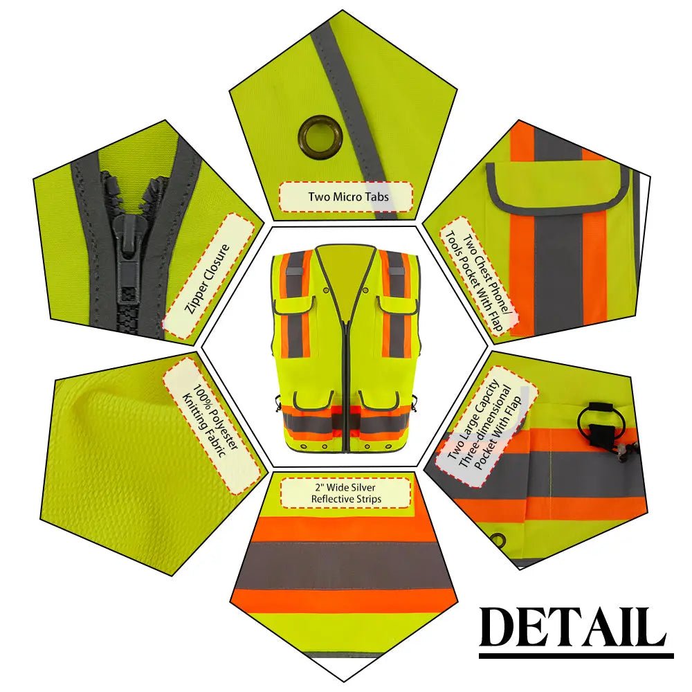 • 【MULTI-FUNCTION POCKETS】This Safety Vest comes with 6 Front Unique Pockets. 2 Chest Pockets, Two Pocket with air holes for easy access, 2 Pockets with velcro closure.