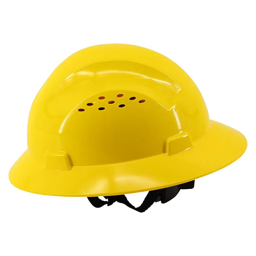 The Wide Brim type ABS breathable safety helmet is made of ABS material with high impact strength, and the type reinforcement effectively enhances the impact strength of the top and protects the head of the helmet wearer. At the same time, the top vent structure enhances the flow of air to the wearer’s head.