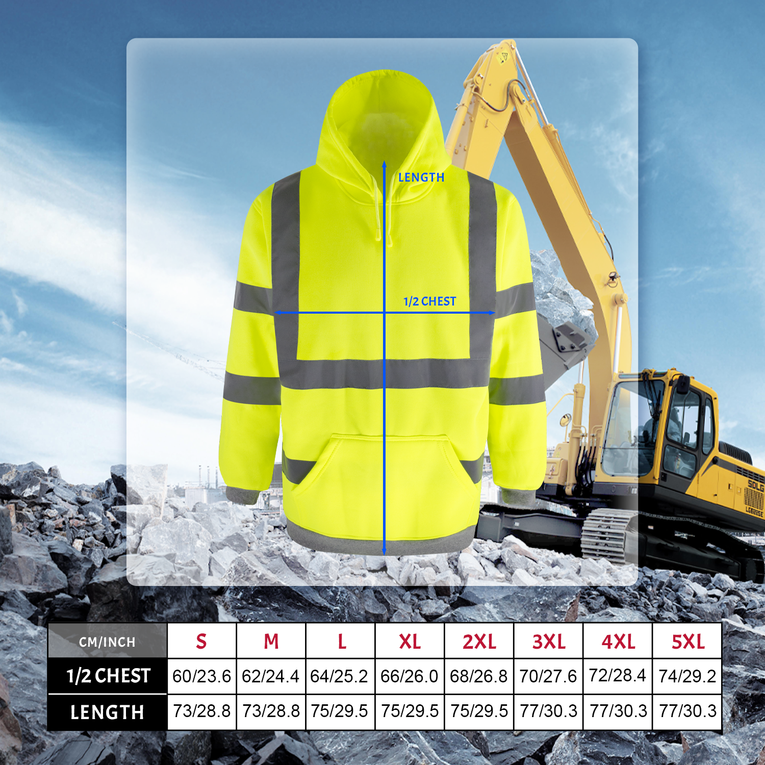 - 【COMPLIANCE & SAFETY】Featuring 2” wide silver reflective stripes in an H-back pattern, to make sure you’re always as visible as possible during extreme weather and other low-light work environments. This reflective hoodie is in full compliance with ANSI/ISEA 107-2015 Class 2 for all occupations and available in sizes Small to Large. Perfect purchase with your hard hat, safety glasses, safety vests, and jackets.