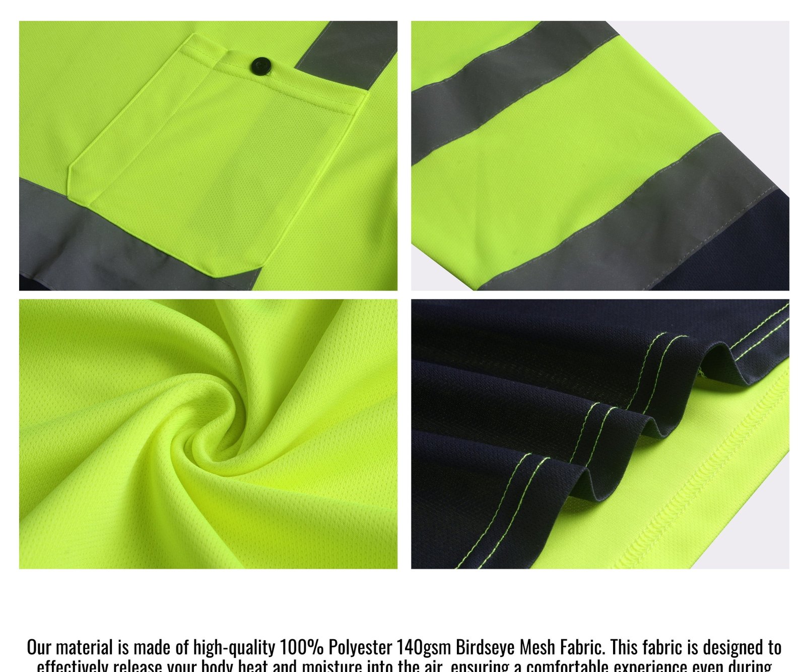 - Material: 100% polyester Birdseye mesh fabric that is lightweight, moisture-wicking, and machine-washable in cold water.
