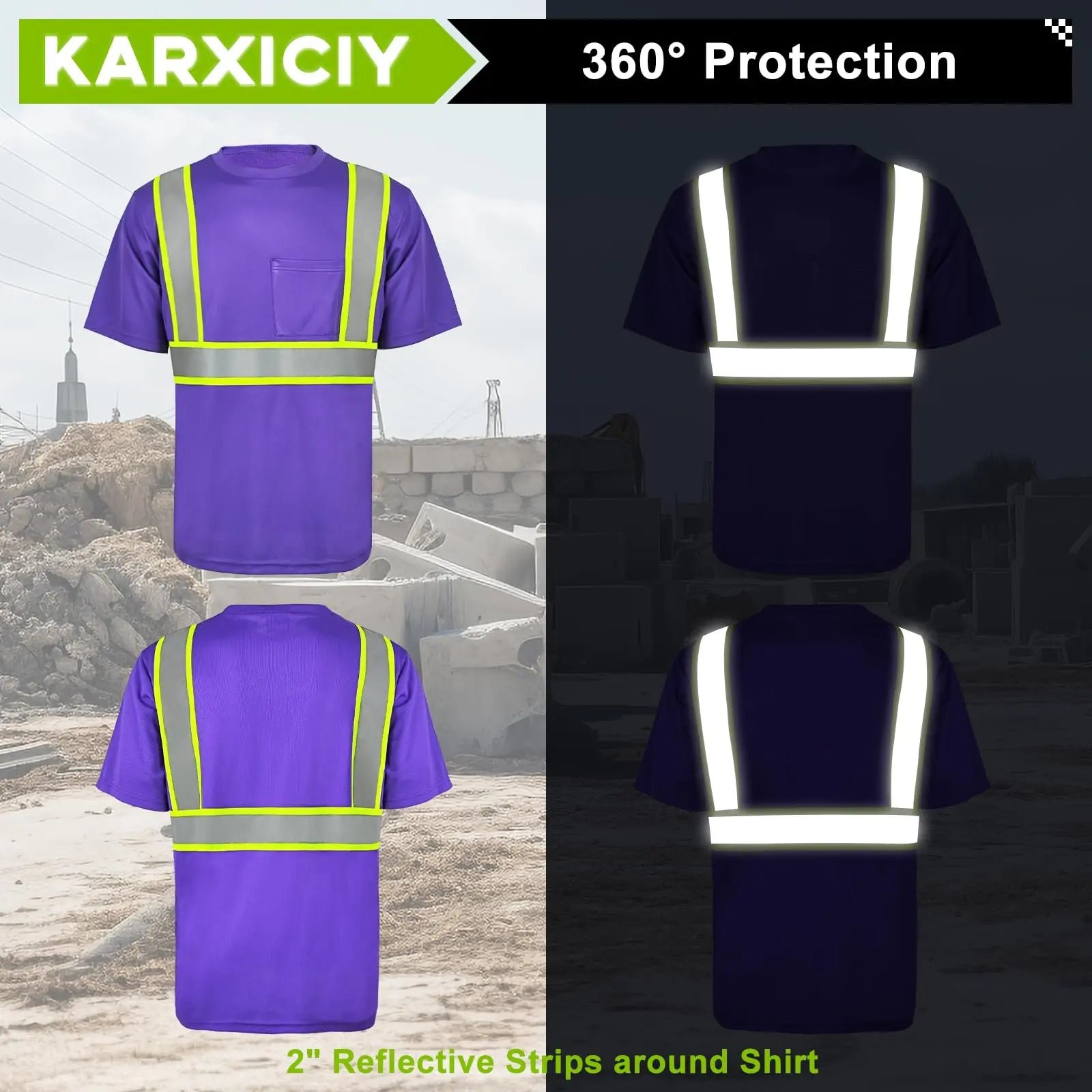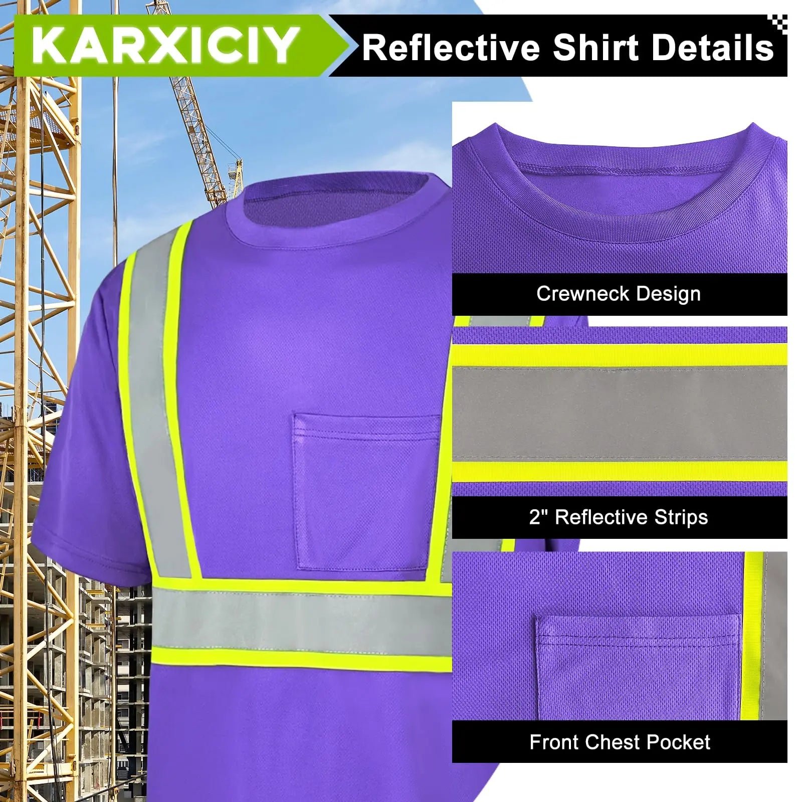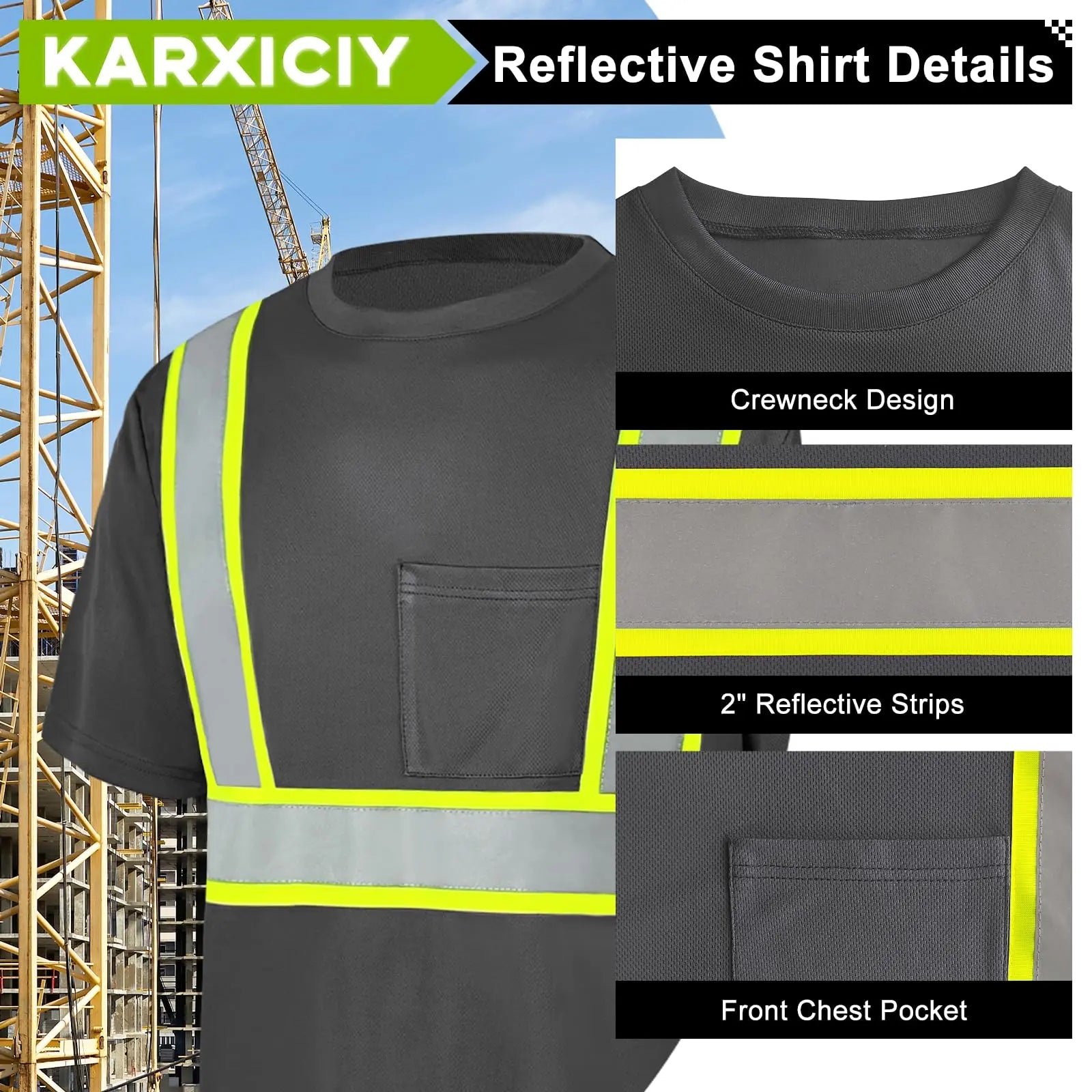 - Hi-Vis Shirt Details: The reflective strips on the safety T-shirt are “DUAL-TONE” reflective strips, which are more durable than simple reflective strips and can provide better reflectivity. Front chest pocket for work essentials.