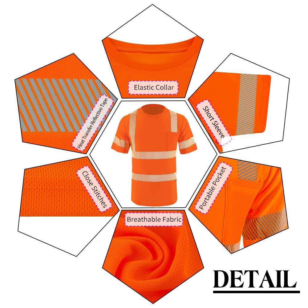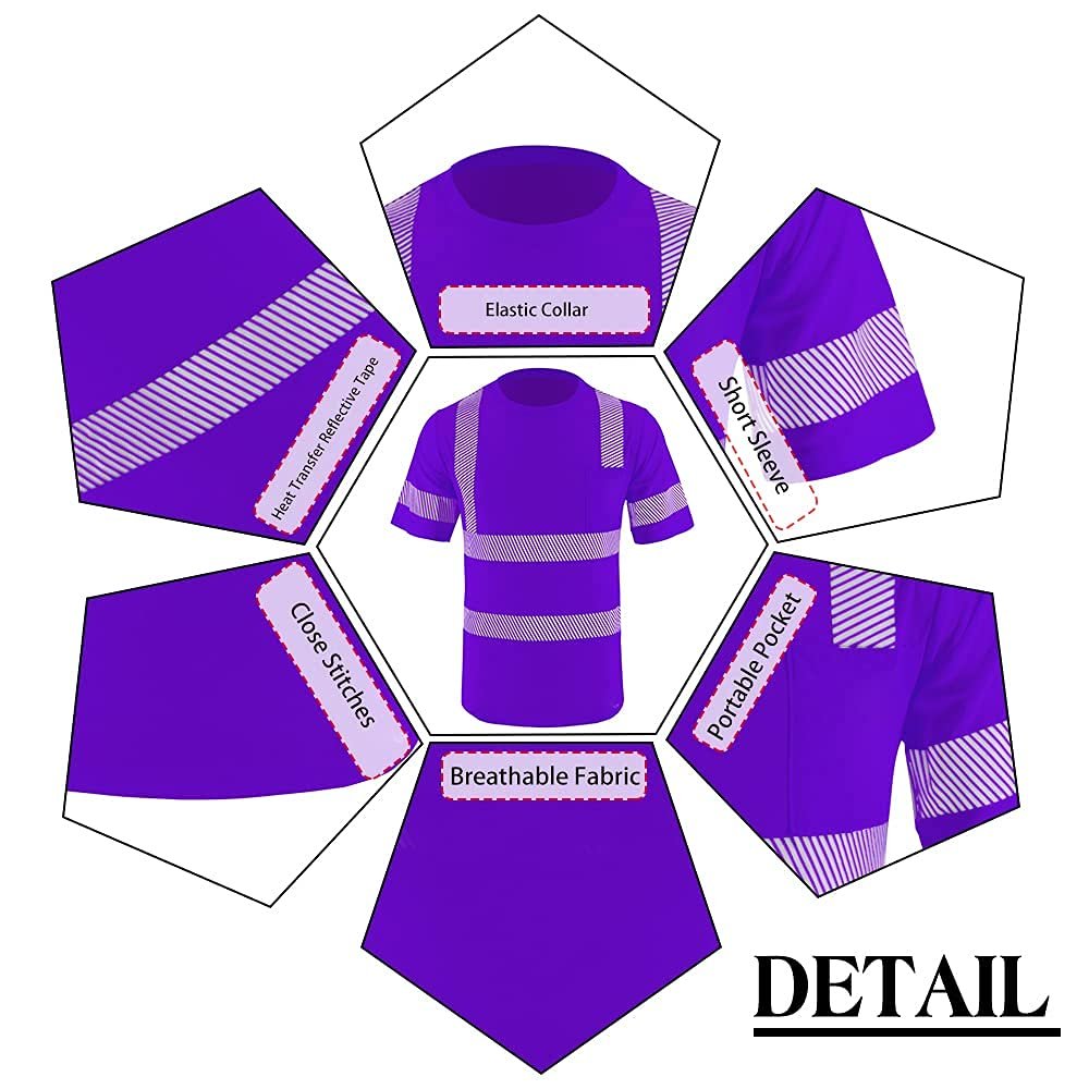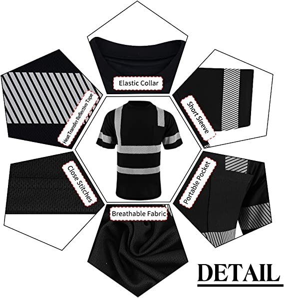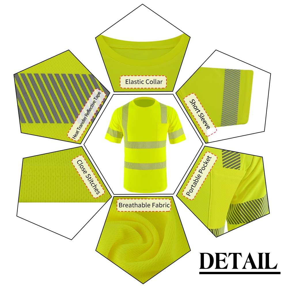 • HIGH VISIBILITY SAFETY | Be Seen and Be Safe with our Class 2 Reflective Safety Shirt. Multiple 2-inch Wide High Reflective Heat Transfer Strips were specifically placed and designed on the front, back and arms of the Safety Shirt to enhance the visibility of the user.