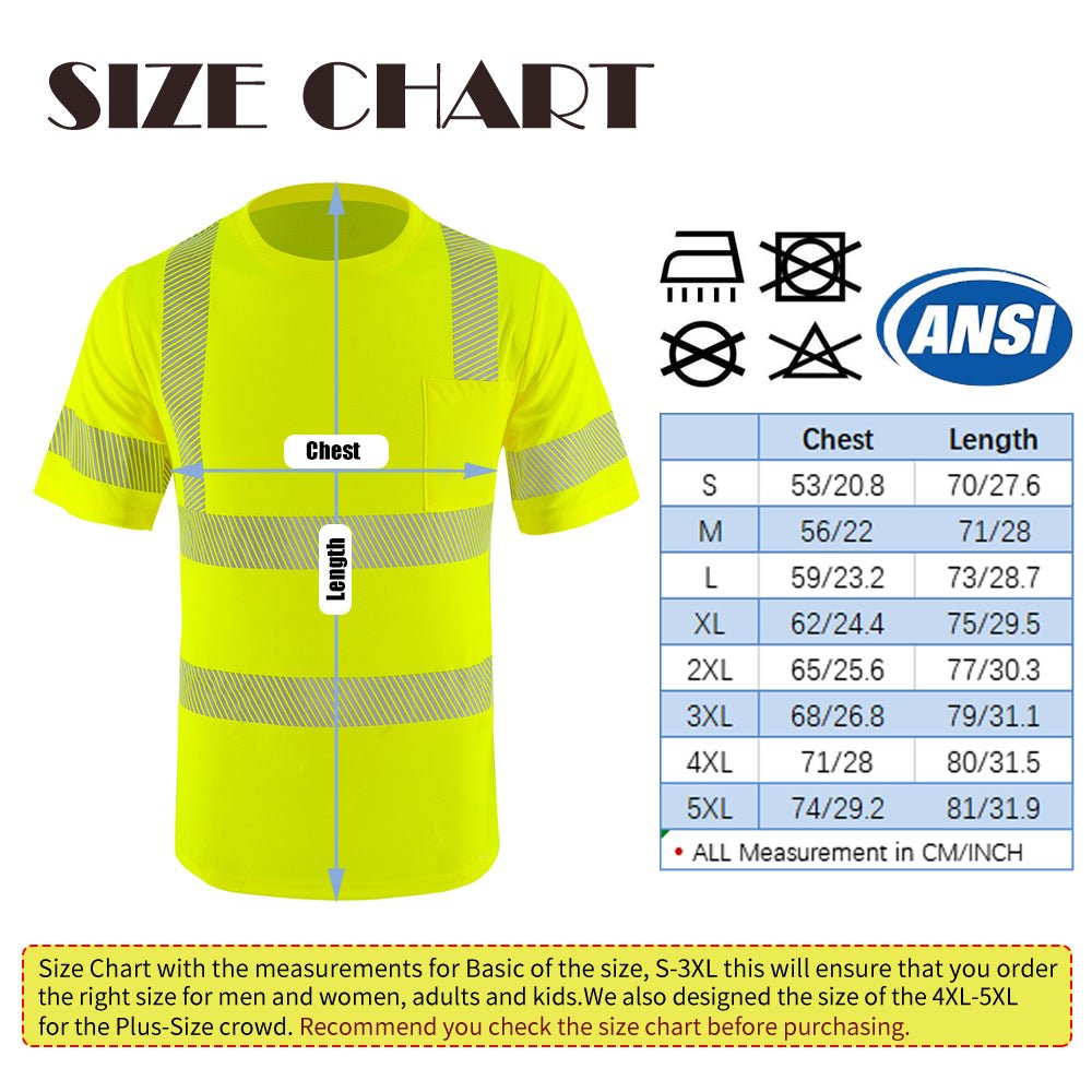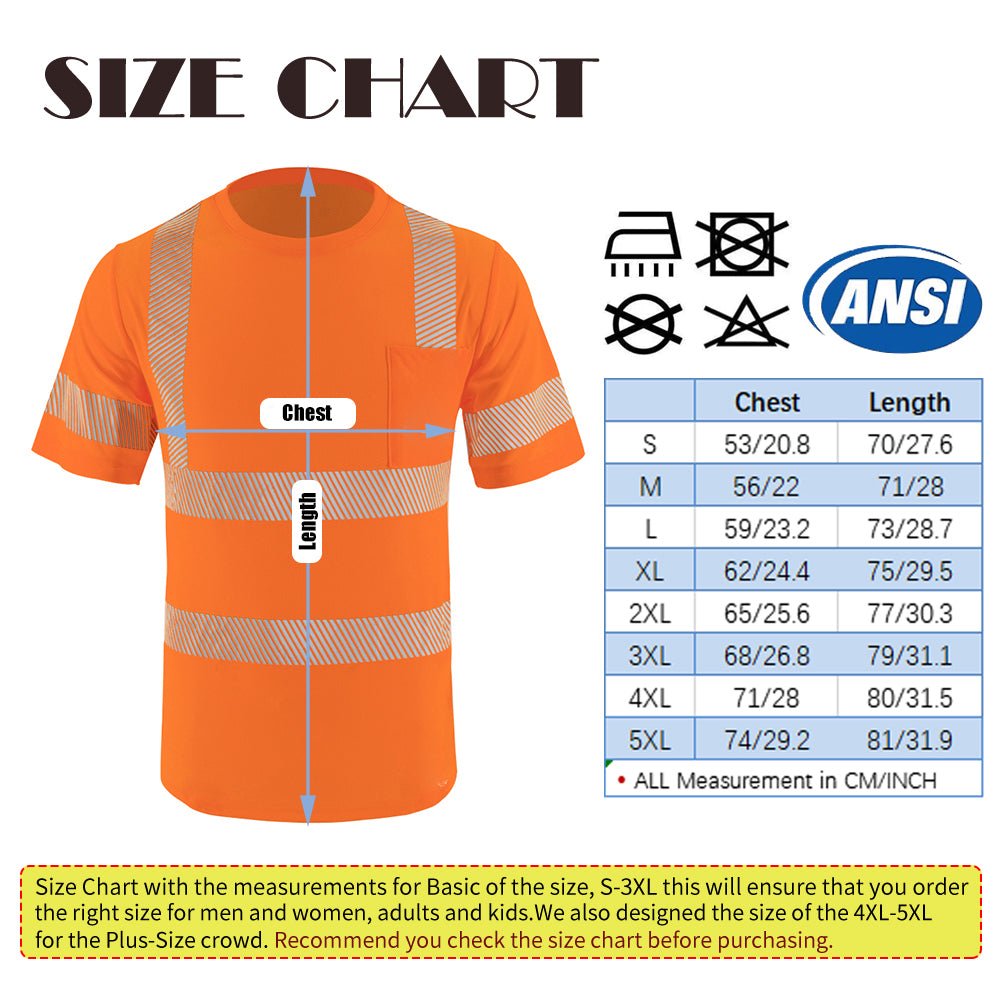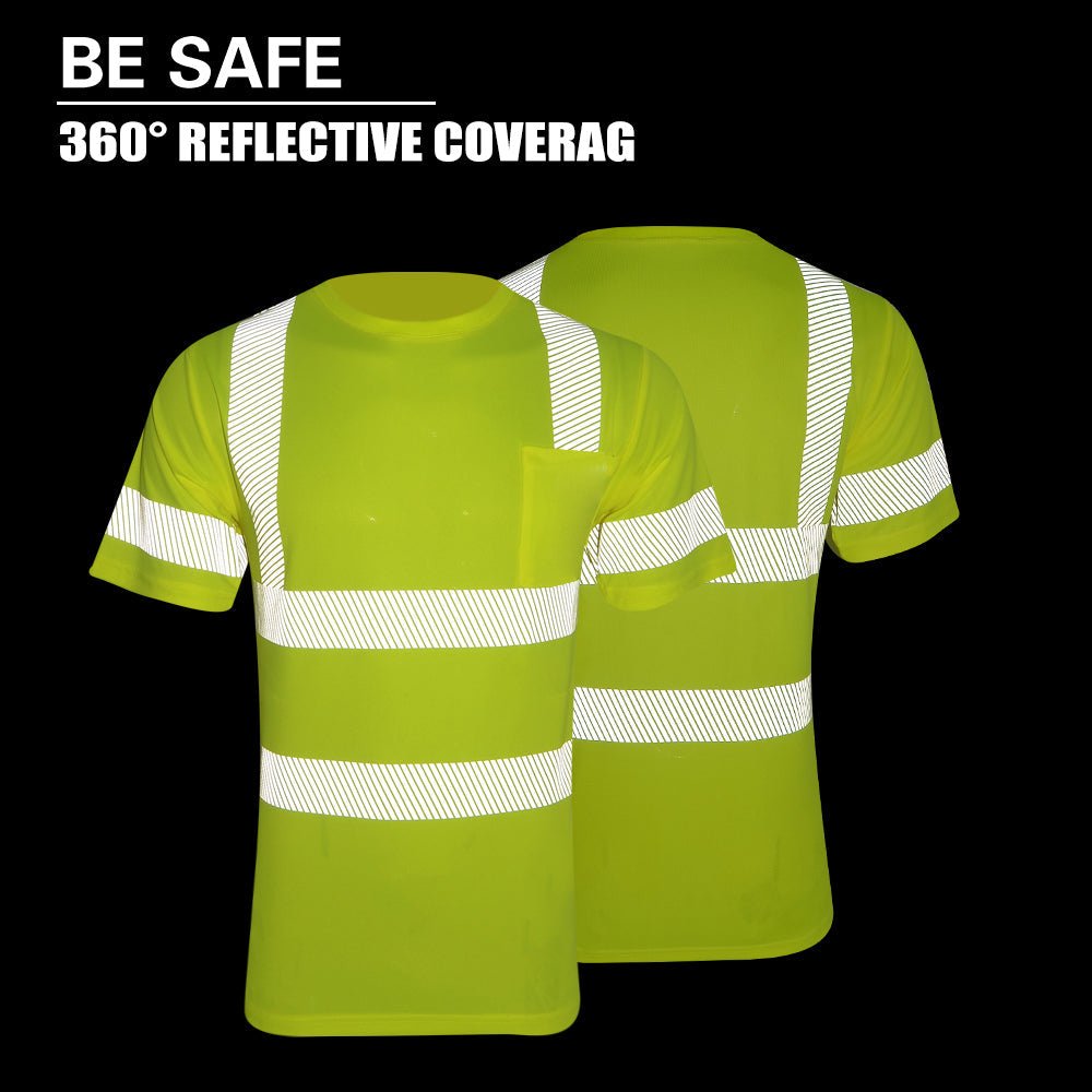 • HIGH VISIBILITY SAFETY | Be Seen and Be Safe with our Class 2 Reflective Safety Shirt. Multiple 2-inch Wide High Reflective Heat Transfer Strips were specifically placed and designed on the front, back and arms of the Safety Shirt to enhance the visibility of the user.