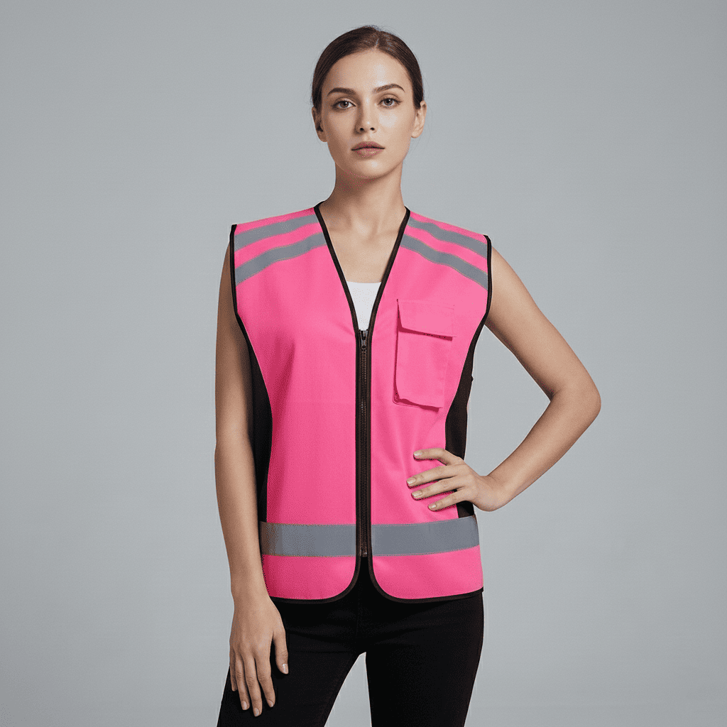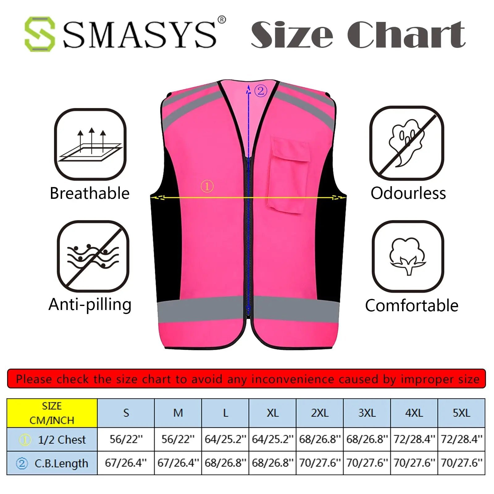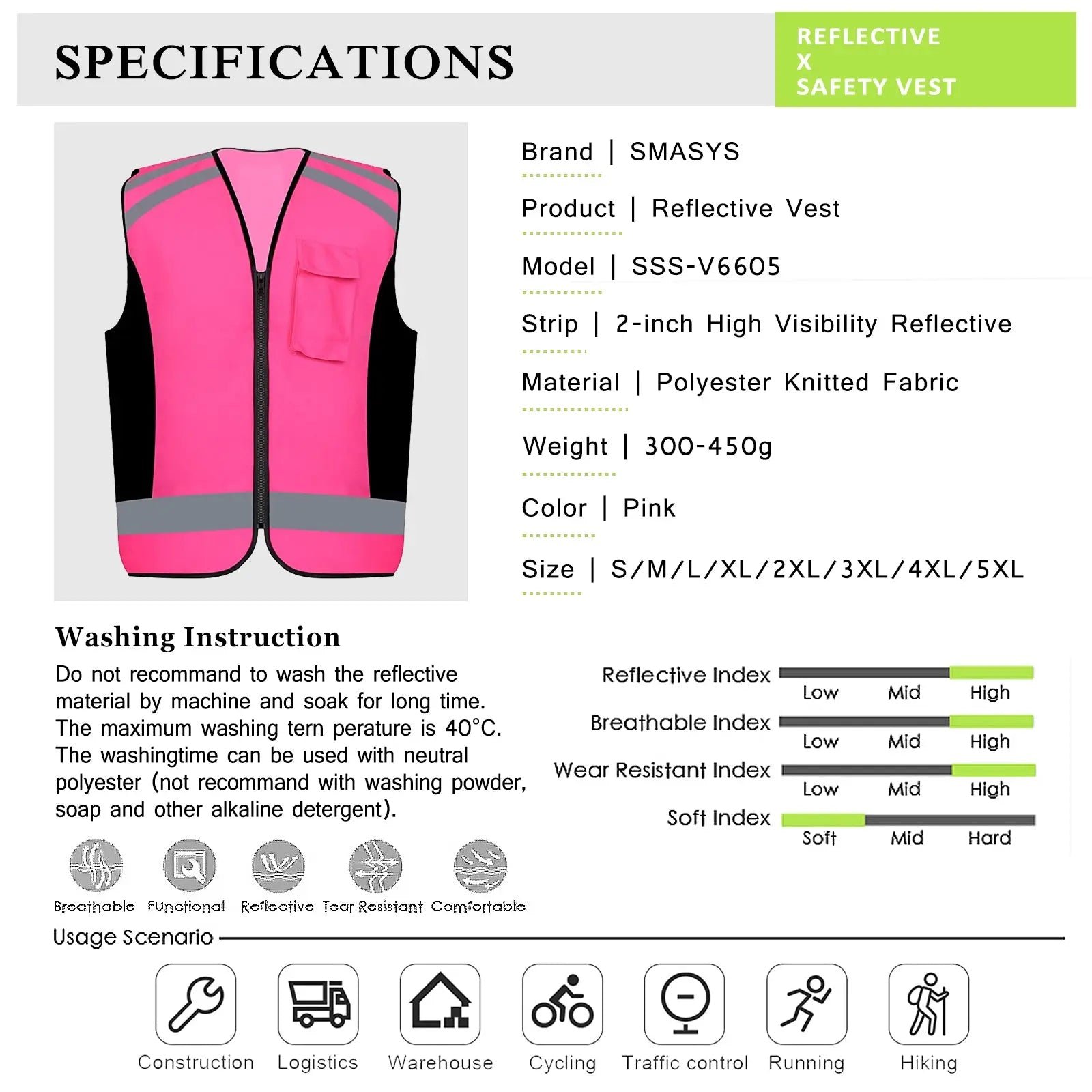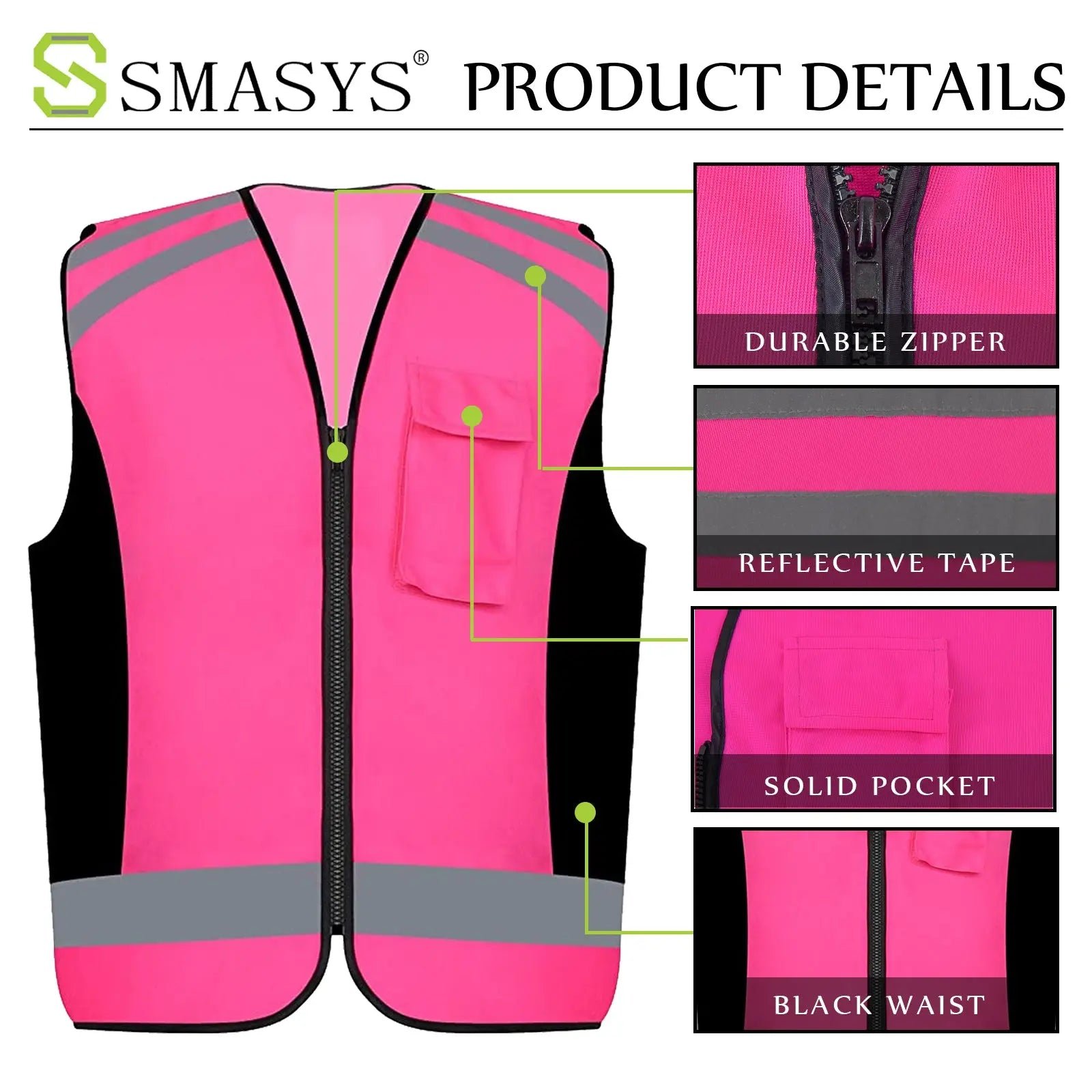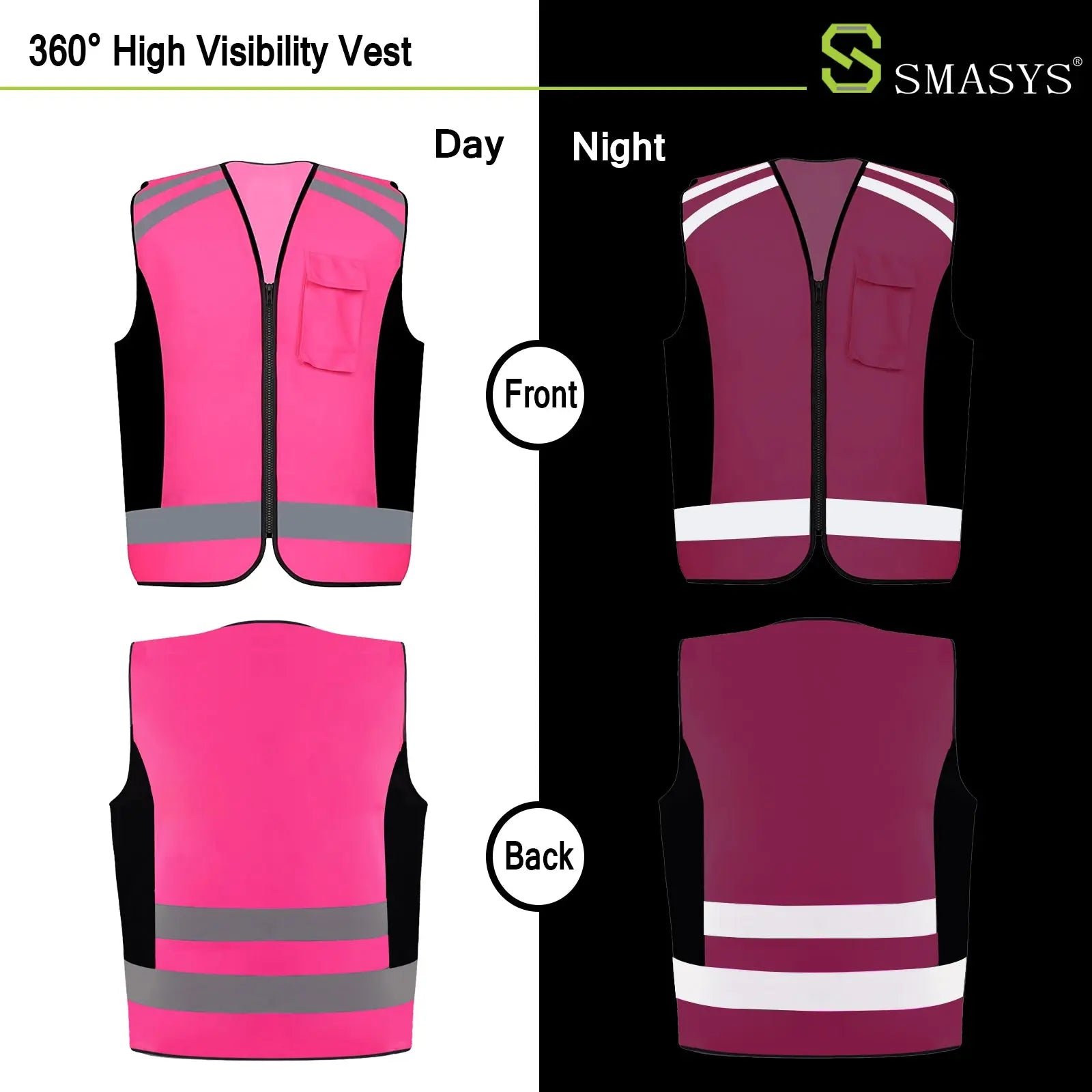 High Visibility Safety Vest with reflective strips, Safety Reflective Vest with a Pocket and Zipper Front for women