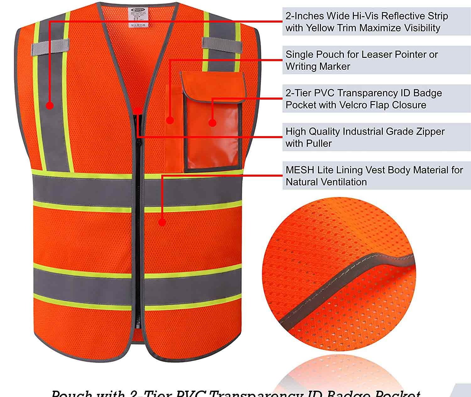 - High Visibility: Four 2-inches wide high visibility reflective strips with neon color extended trim.