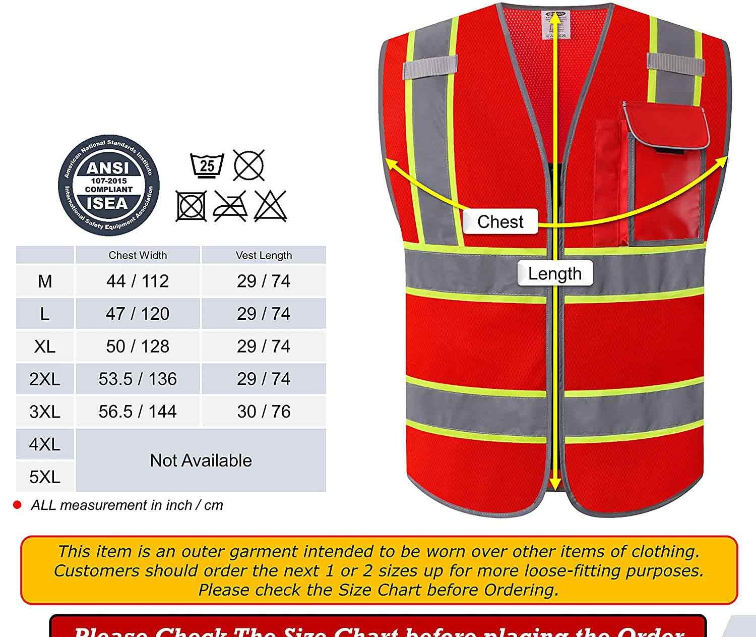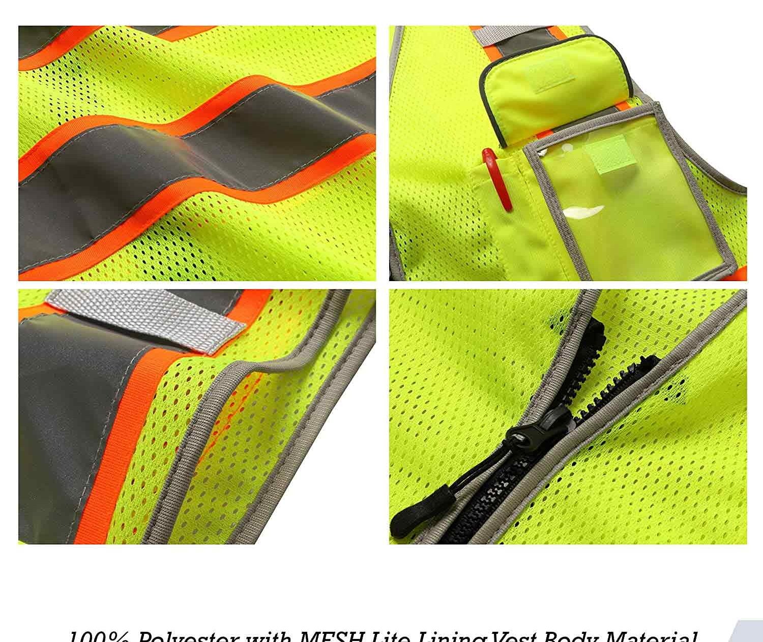 This unisex ANSI-compliant reflective safety vest is designed for both men and women, offering a straight-cut fit for comfort and mobility. Made from lightweight, breathable 100% polyester mesh, it’s perfect for long hours on the job, especially in industrial, construction, and road safety settings. Featuring 360° reflective coverage with four 2-inch-wide strips and neon contrast trim, this vest ensures maximum visibility in both low light and daylight. It includes a secure zipper front, machine-washable for easy upkeep, and practical storage with a 2-tier utility pocket and transparent PVC window secured by a Velcro storm flap. Ideal for workers in various industries or outdoor enthusiasts, it meets ANSI/ISEA 107 safety standards. Note: Not flame-resistant or anti-static.