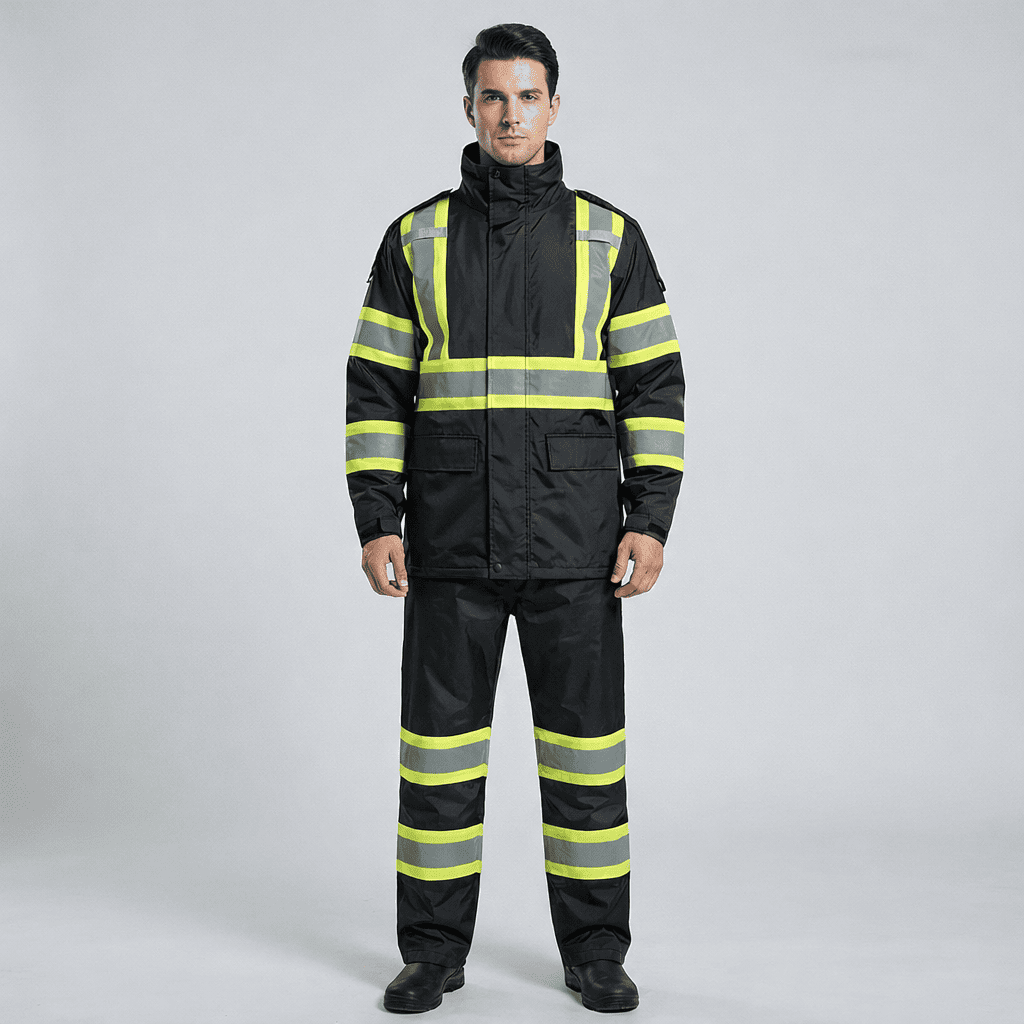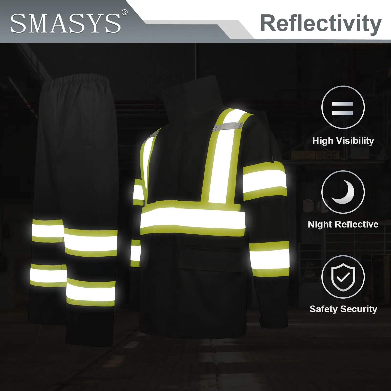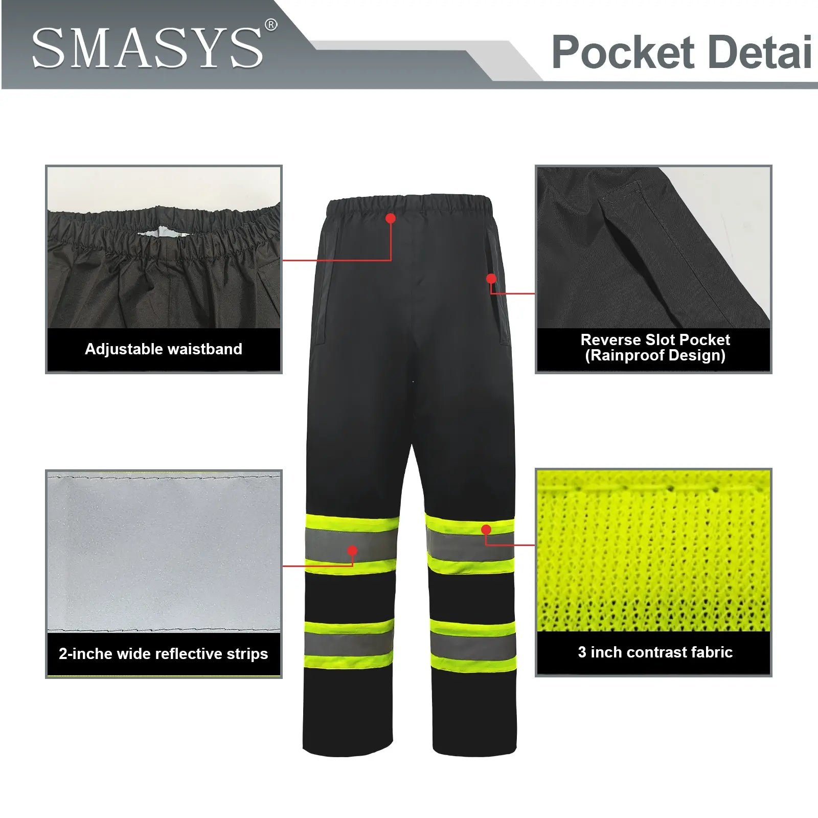 - 【HIGH VISIBILITY AND REFLECTIVITY】 The Safety Rain Jacket and Pants has 2 vertical and 1 horizontal 2-inche wide reflective strips with 3 inch contrast fabric to cover the waist, chest, shoulders, back respectively, and two 2-inch wide reflective stripes with 3 inch contrast fabric on each sleeve and additional 2 strips on each leg, which can provide 360° protection, improve the visibility of the jacket, make you stand out easily, and maximize the visibility and safety of the wearer.