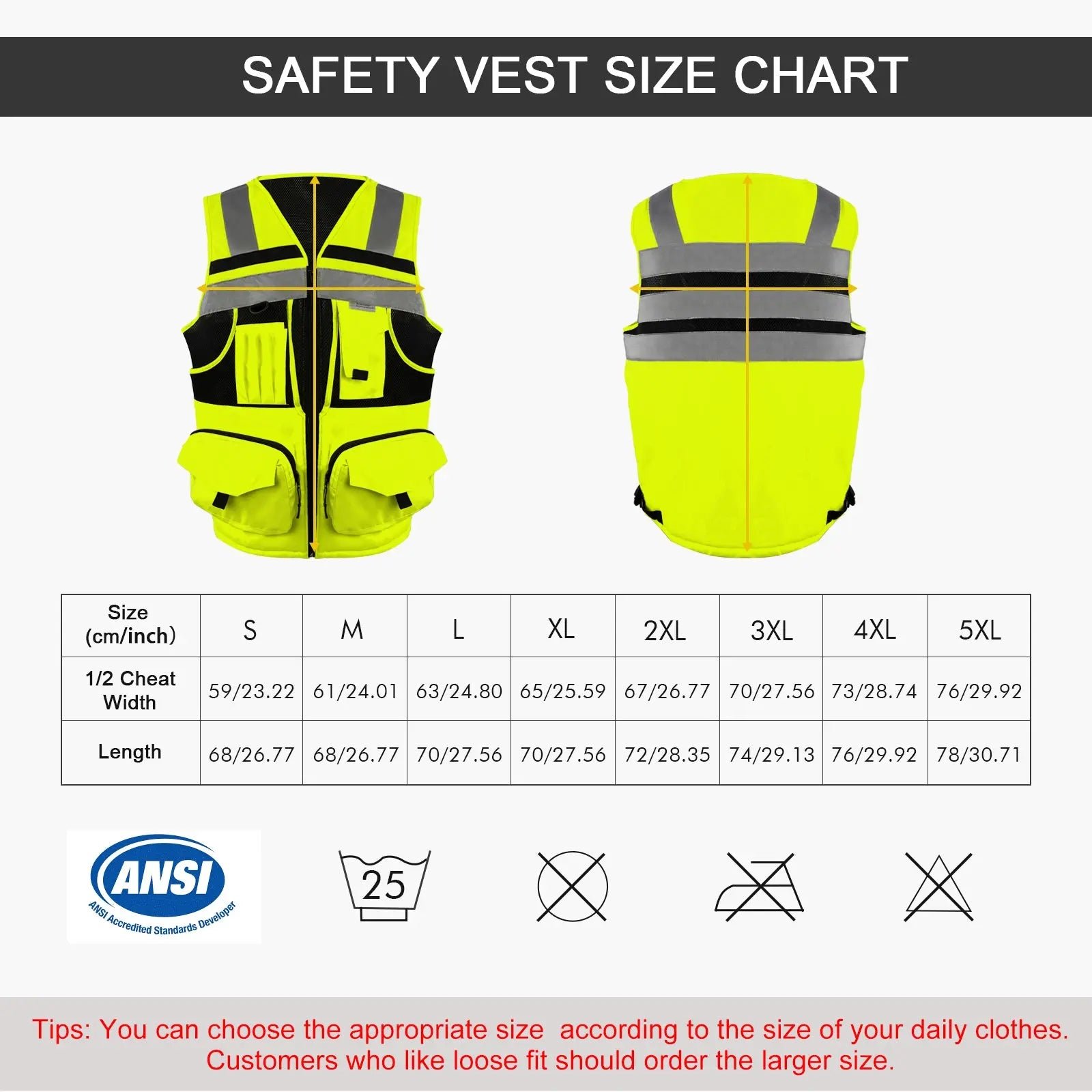 MULTI CHOICES: This high-visibility safety vest has a variety of sizes and colors. We highly suggest using your daily vest size as a reference. Customers who prefer a loose fit should order the larger size.