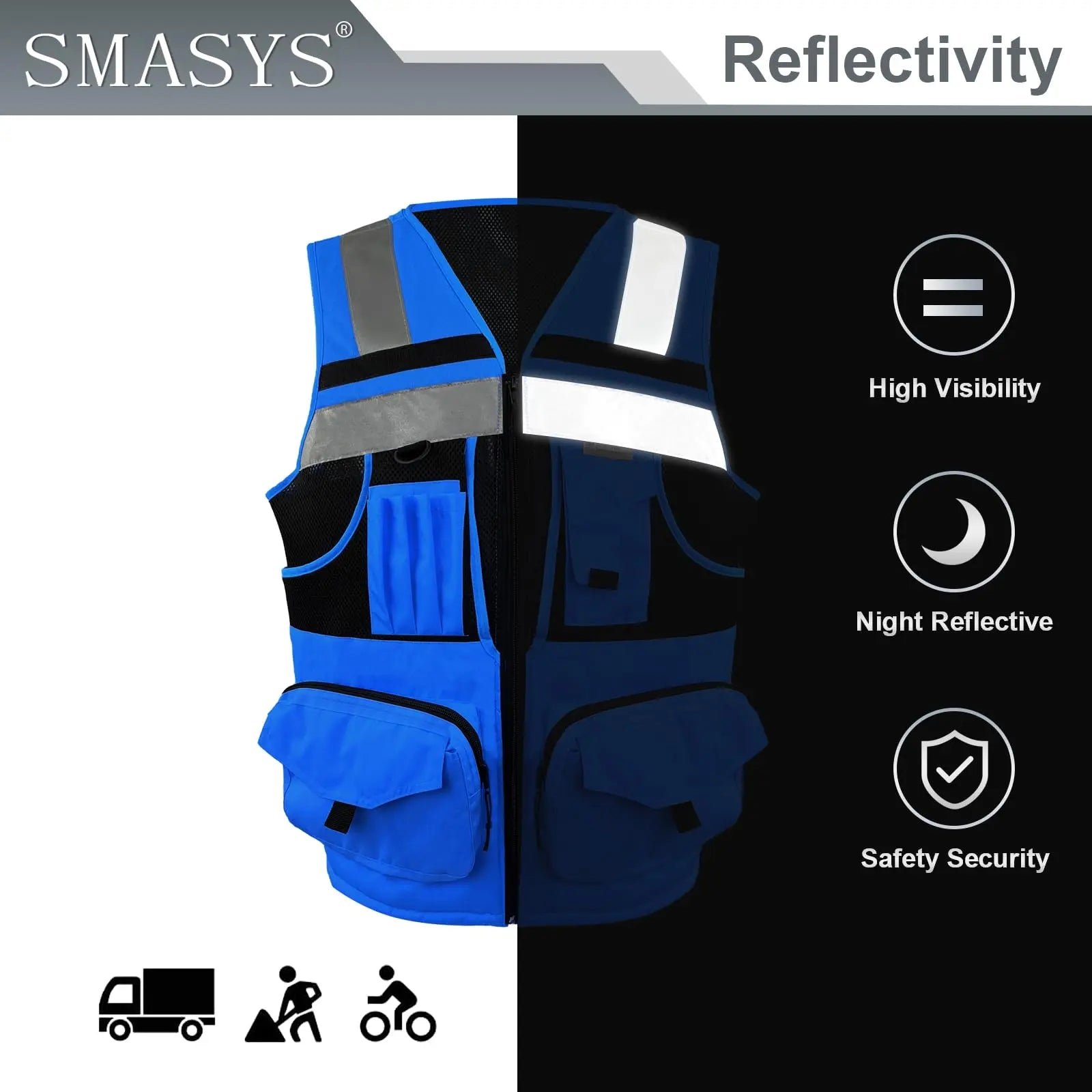 Providing high visibility up to 300 meters (about 984 ft) away at night, the reflective strips ensure 360-degree visibility, ensuring safe working day and night.