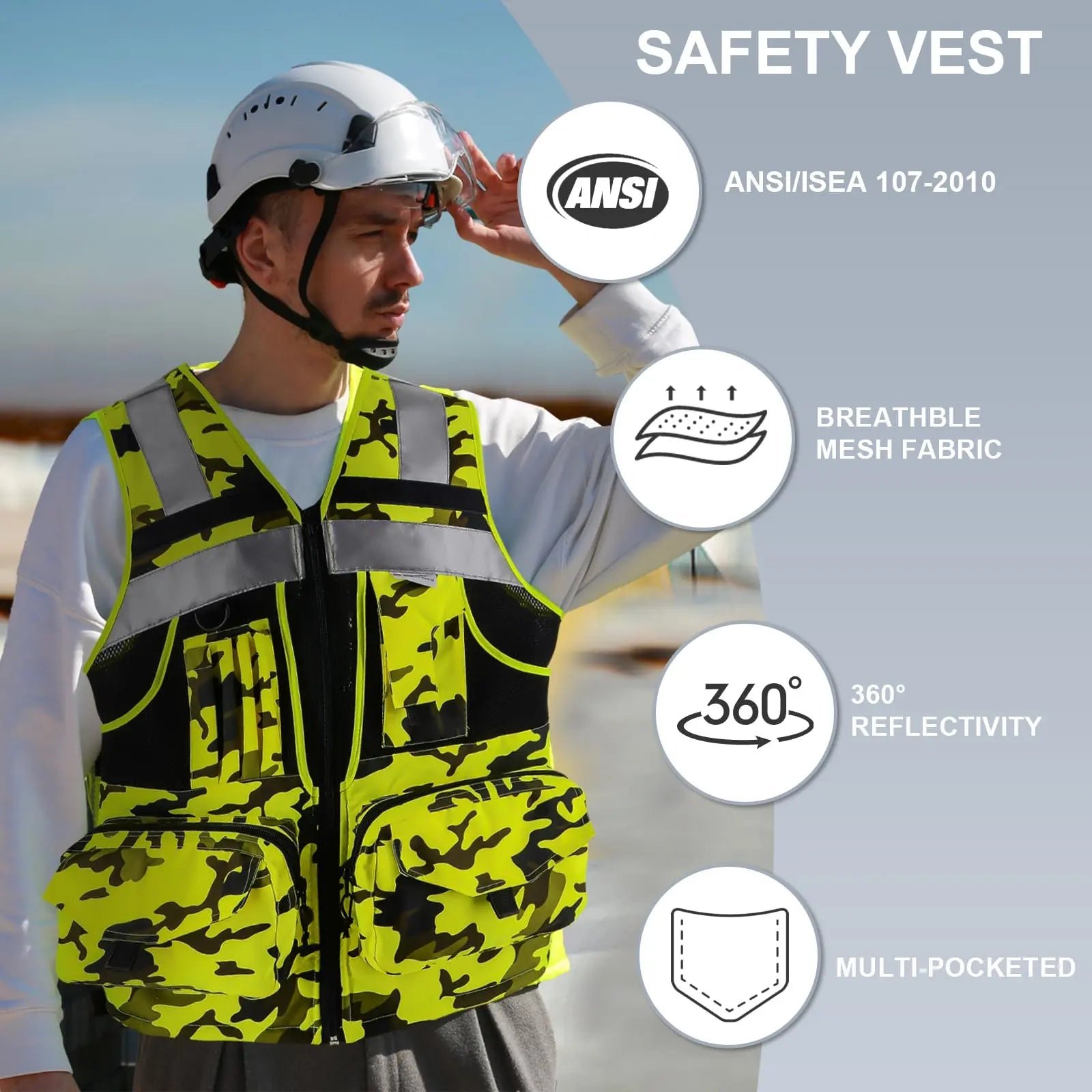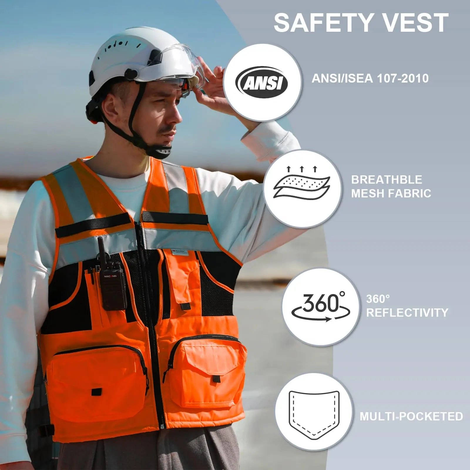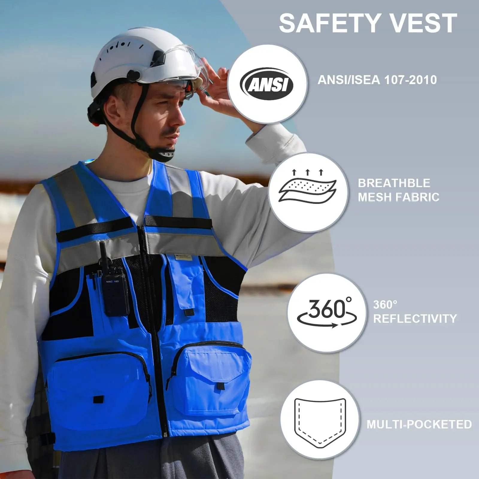 Ideal for construction workers, contractors, engineers, public safety marshals, traffic attendants, and outdoor activities like hiking and cycling.