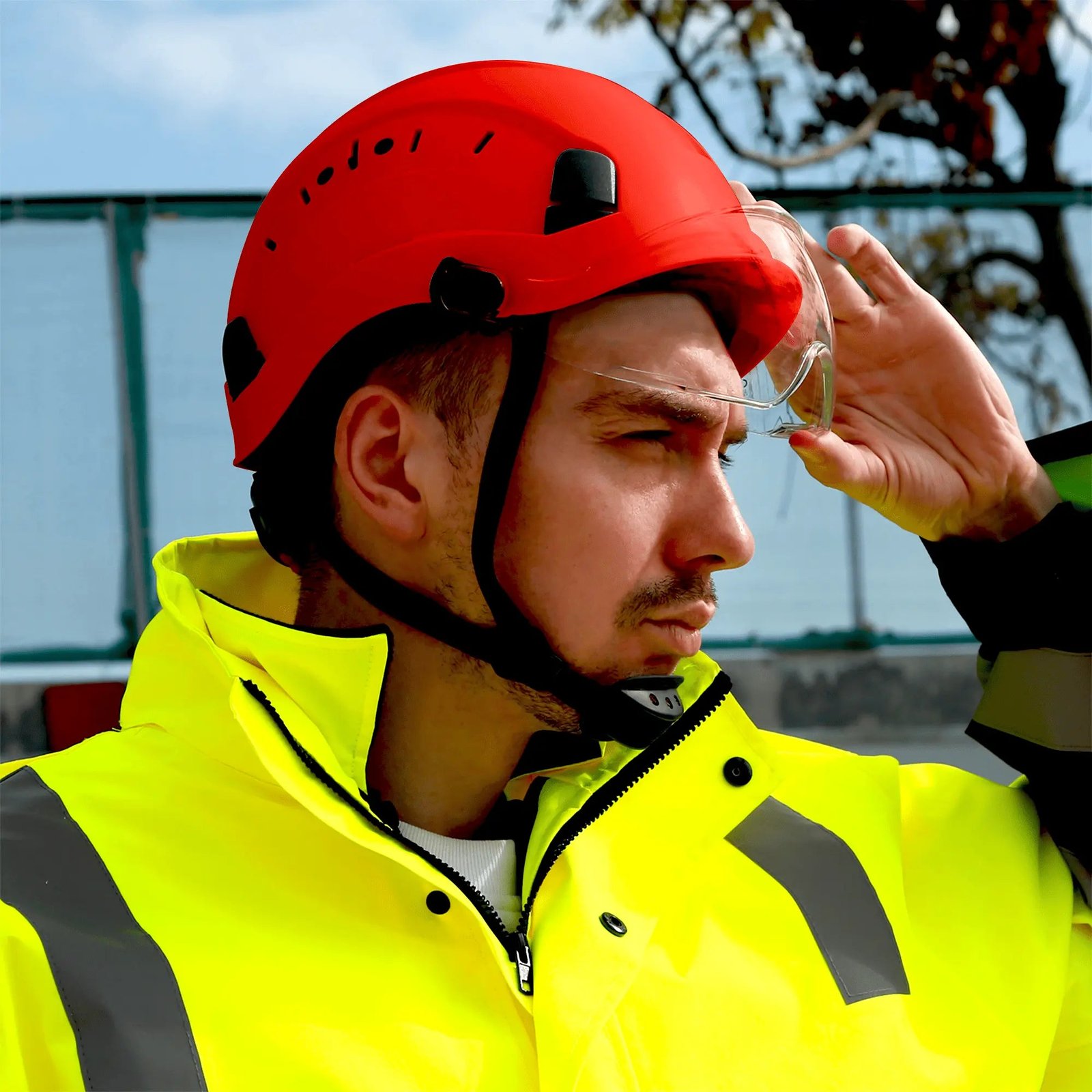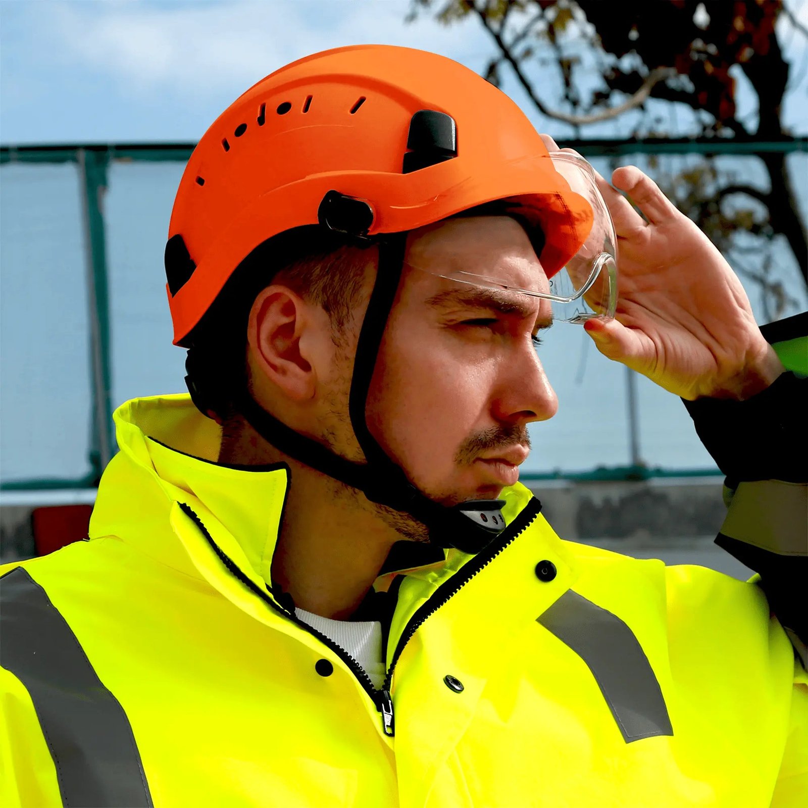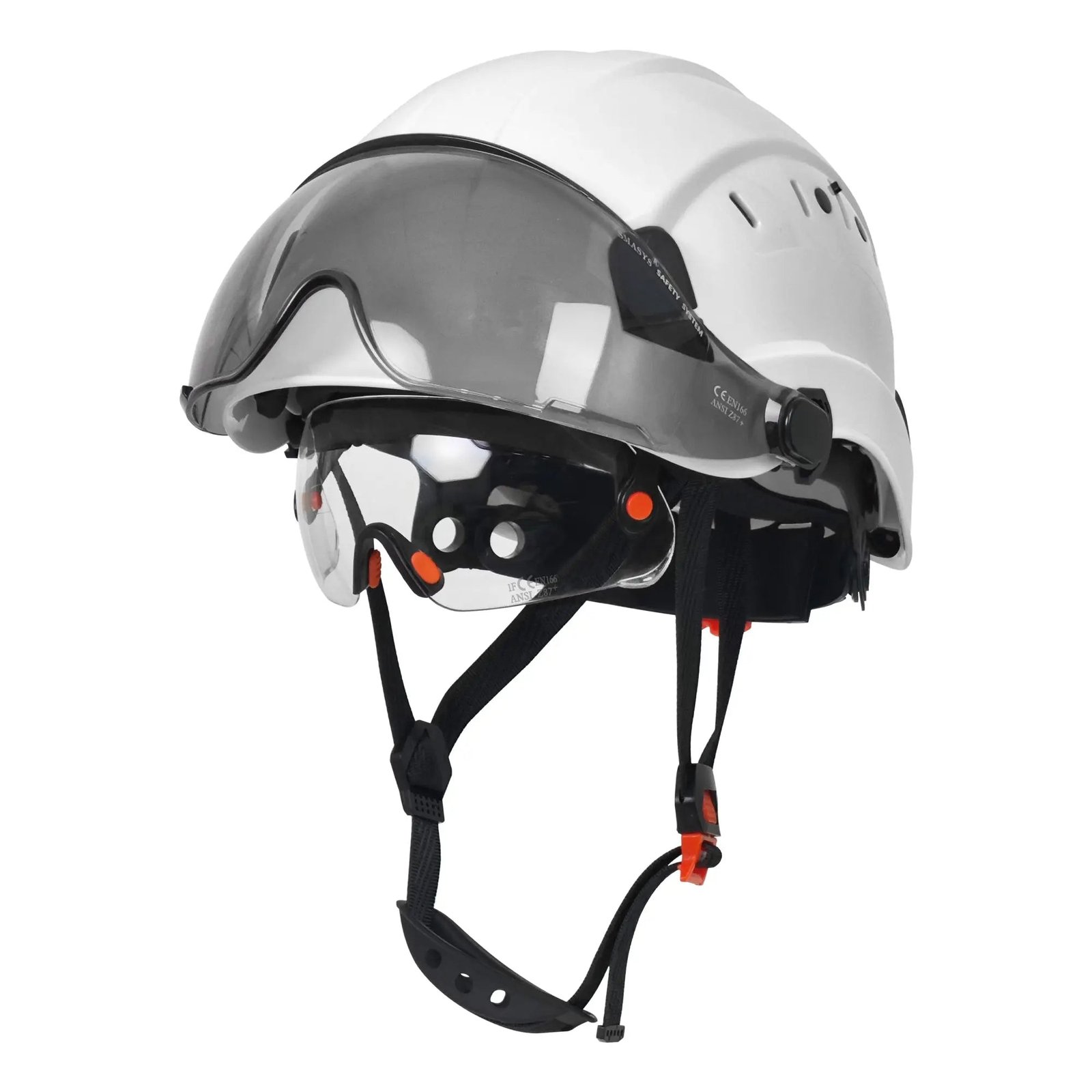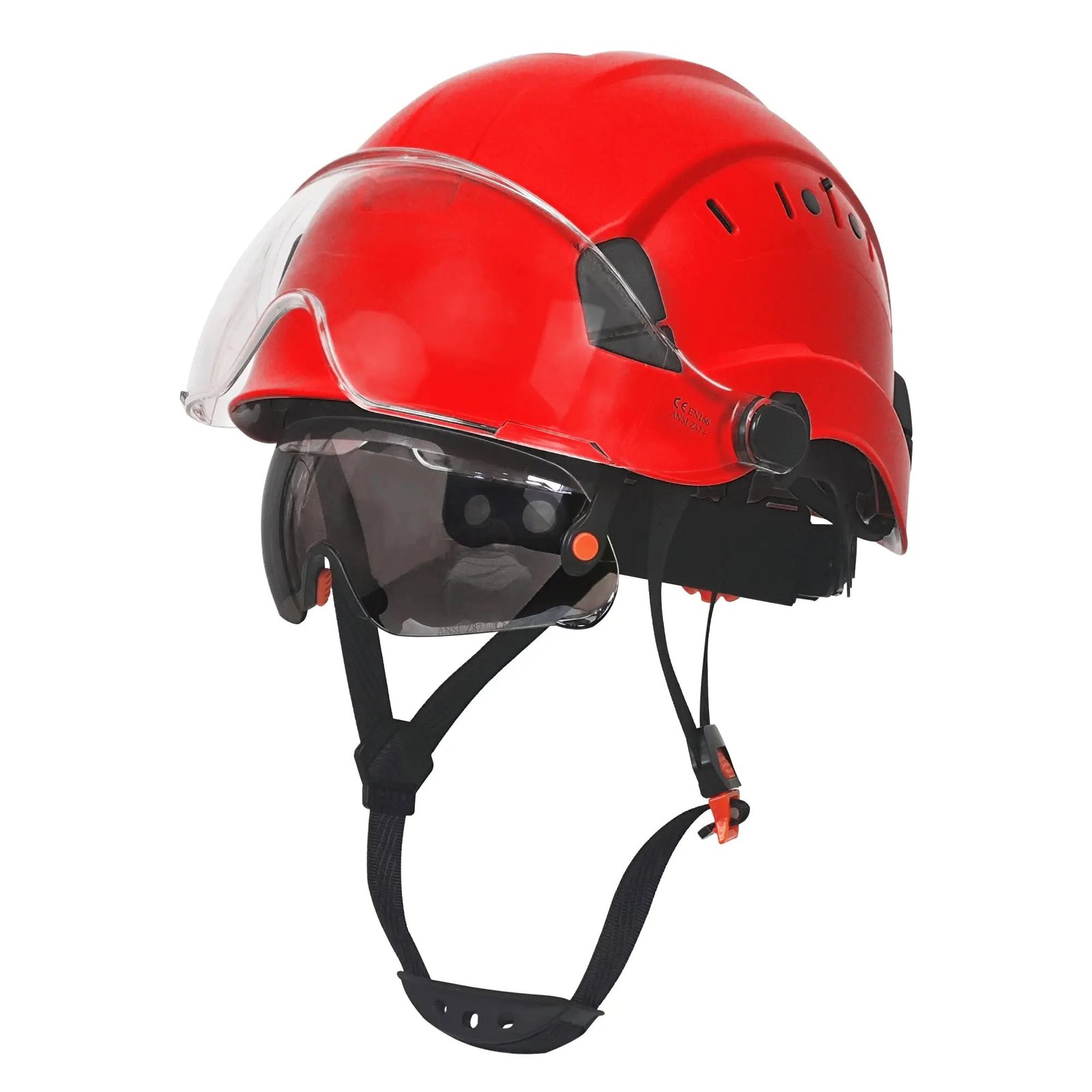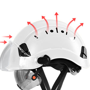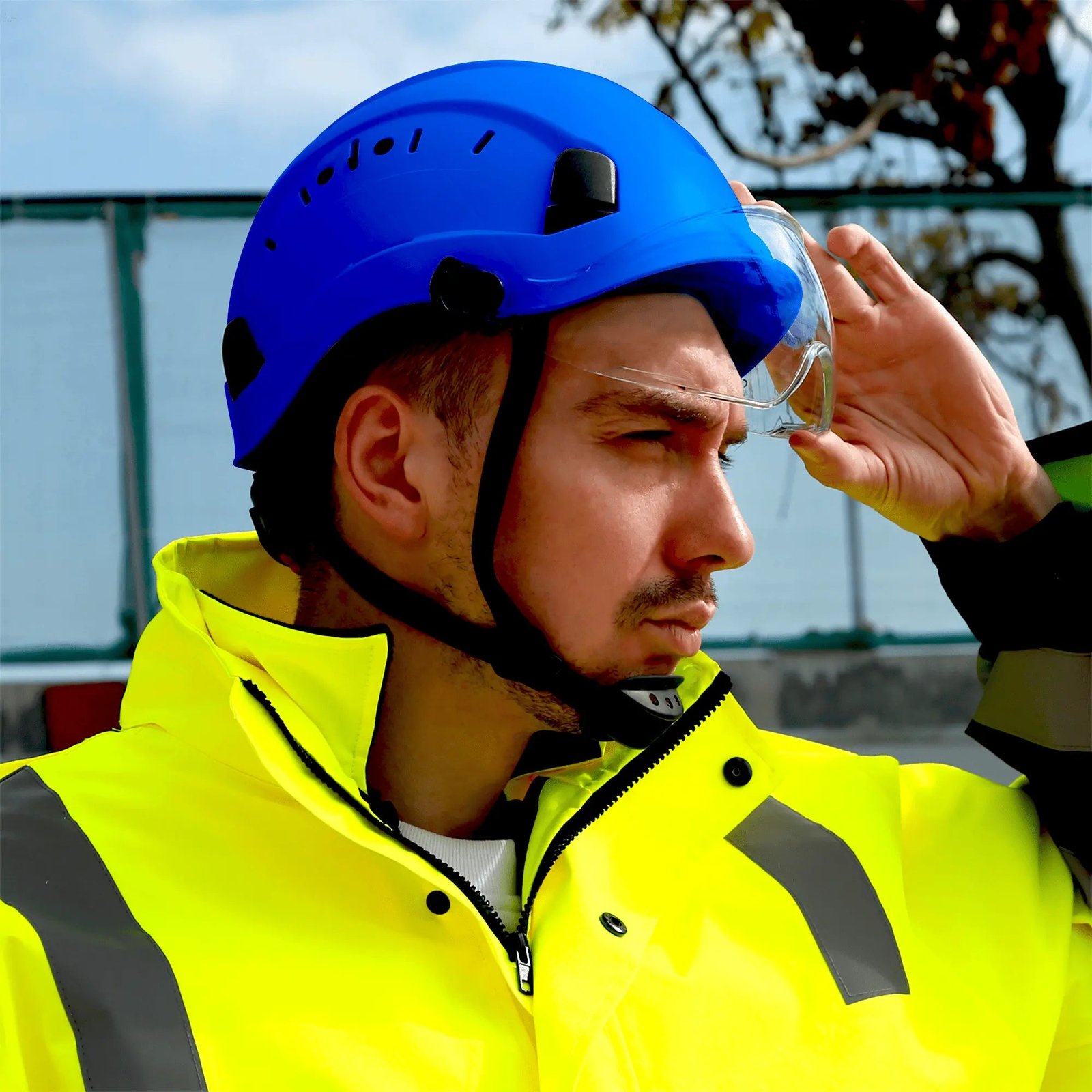 - 【CONFIDENCE IN PROTECTION】 Safety helmets protect the head from falling objects on construction sites or building sites, ensuring the safety of the wearer’s life. The visor can be slid up and down. When in use, slide it down to protect your eyes from scratches and dust, ensuring clear and unobstructed vision even when wearing sunglasses or reading glasses underneath. When the visor is not in use, it can be slid to the top of the helmet.
