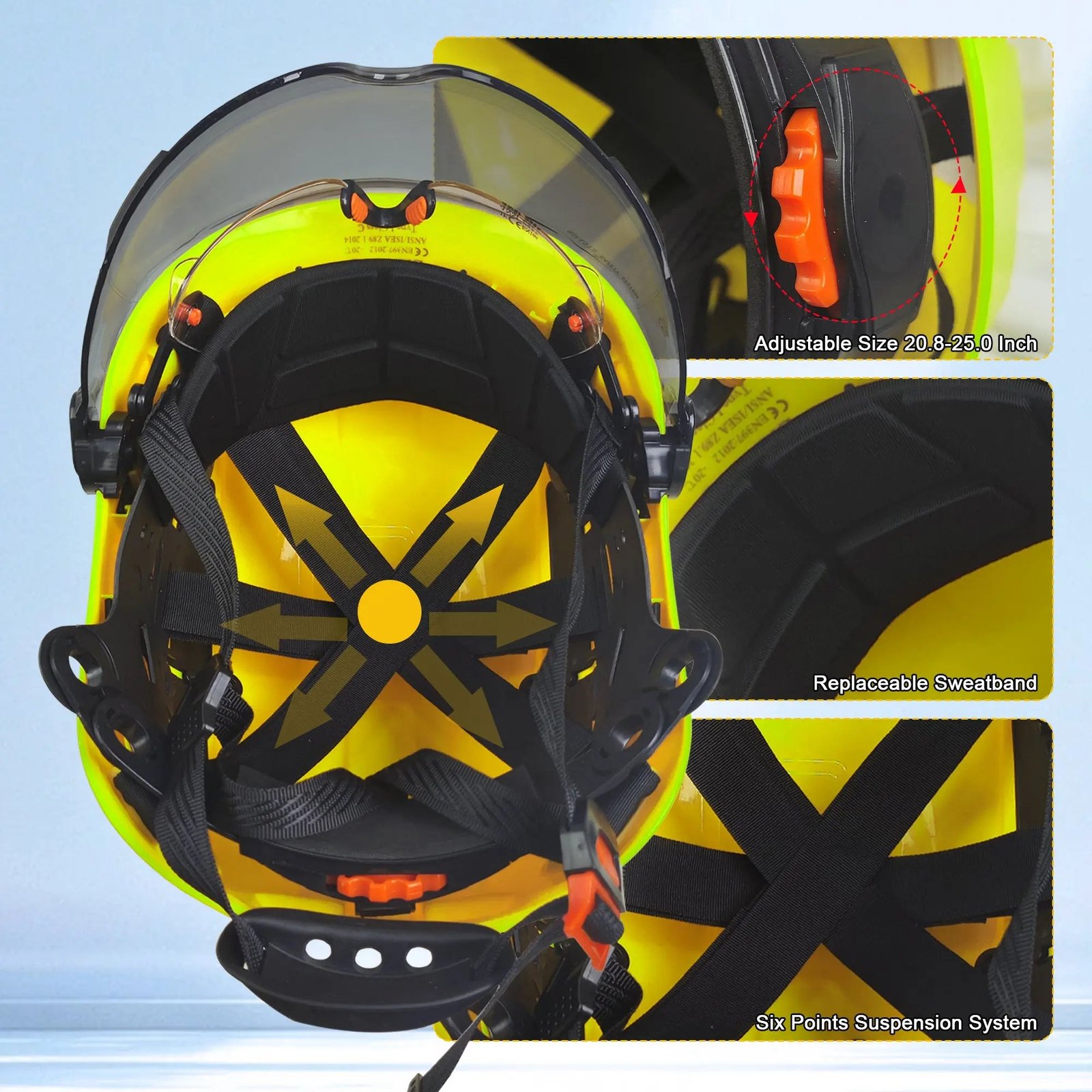 - 【VERSATILE & PROTECTION】Models with a visor allow for the attachment of earmuffs on the side slot to protect the ears. A larger mesh face shield can be added to the front of the helmet to provide full-face protection for welding purposes. However, if you want to fit a headlamp, mining lamp, face shield, forestry kit, or weld protection, you will need to remove our lenses. One helmet for multiple uses, meeting the safety needs of different working environments.