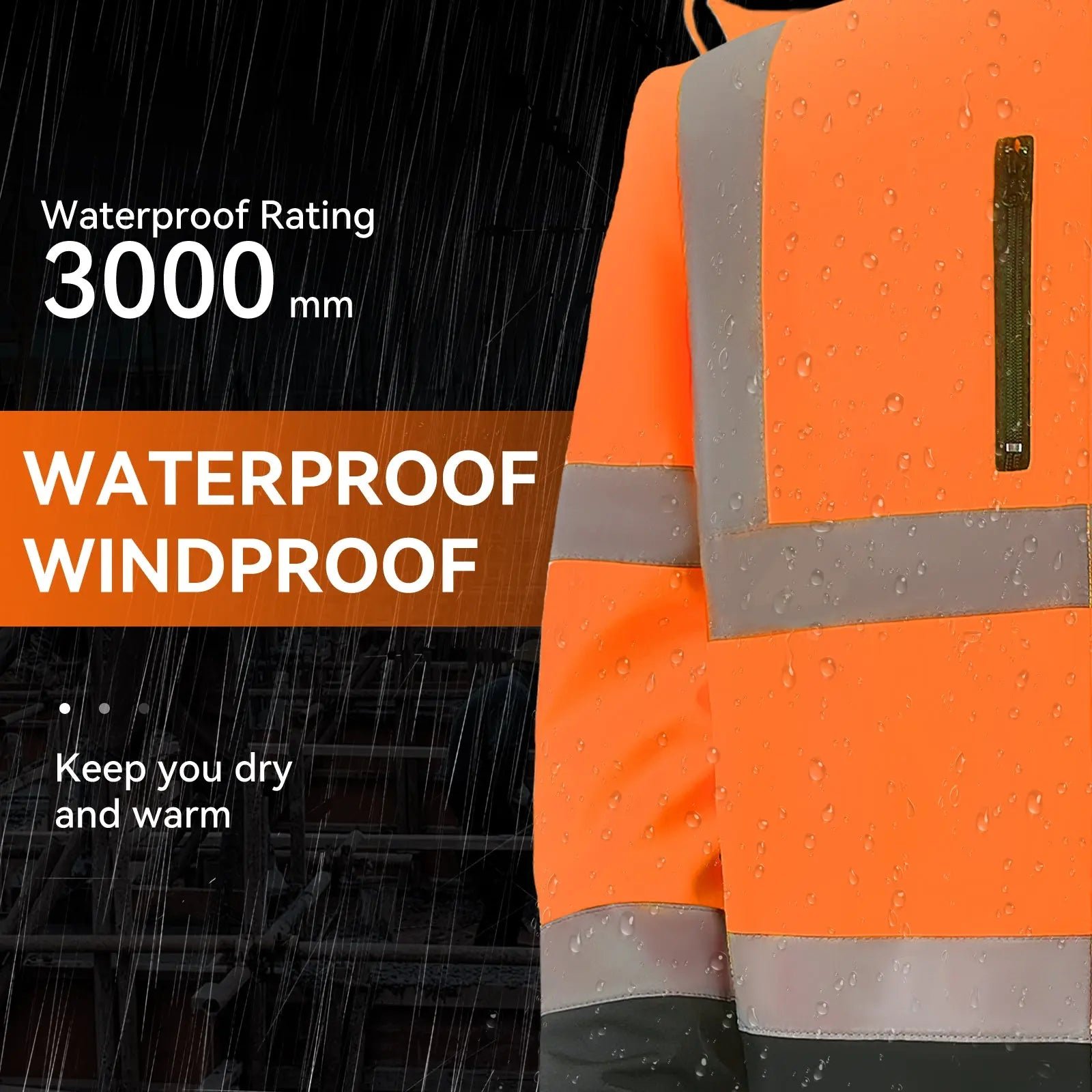 • HIGH VISIBILITY AND REFLECTIVITY: Made from ultra-lightweight and Comfortable Waterproof Oxford Fabric And 2” Width Reflective Strips on Both Front and back, Our Reflective Safety Jackets make you Visible in traffic from 600 feet by day and night.