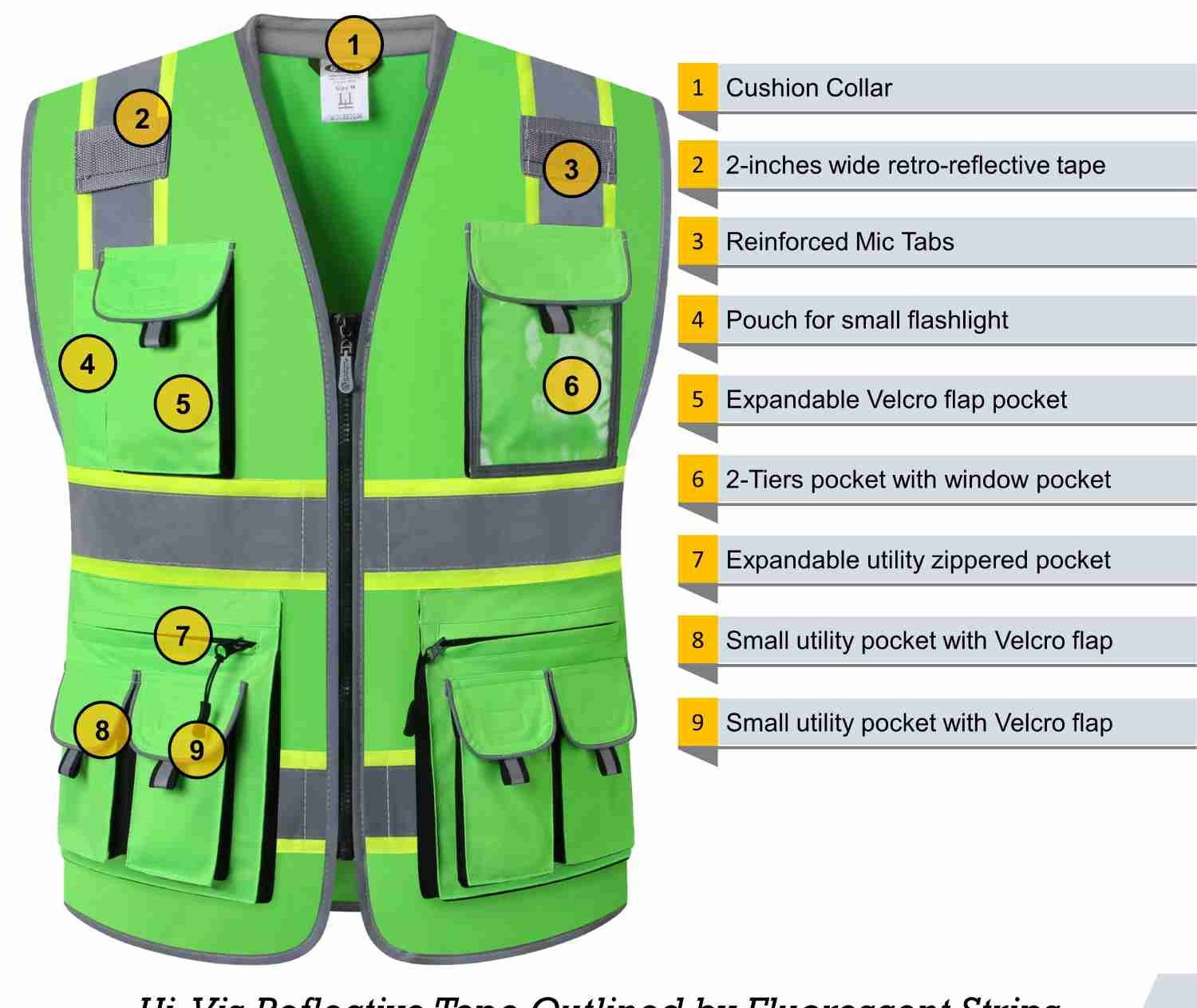 • Maintenance & Care: Machine washable in cold water. Air dry to maintain the vest’s reflective quality and durability.