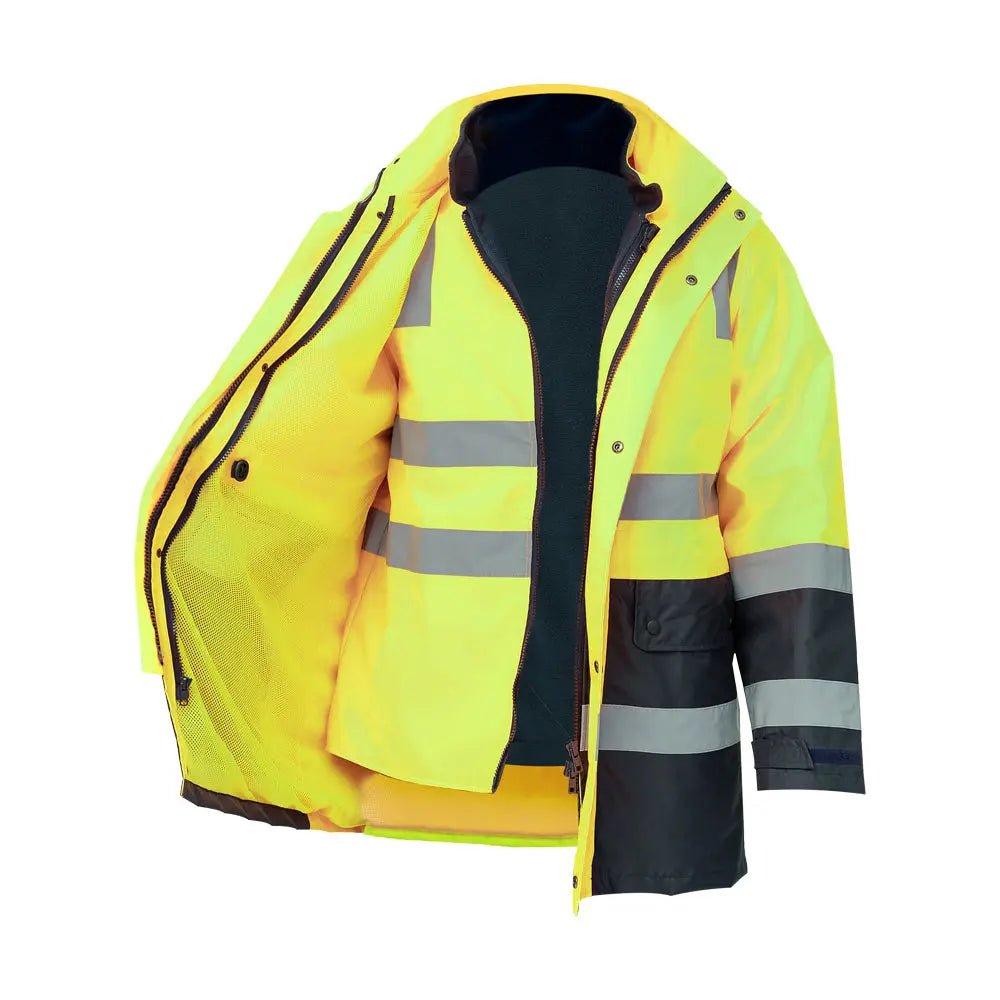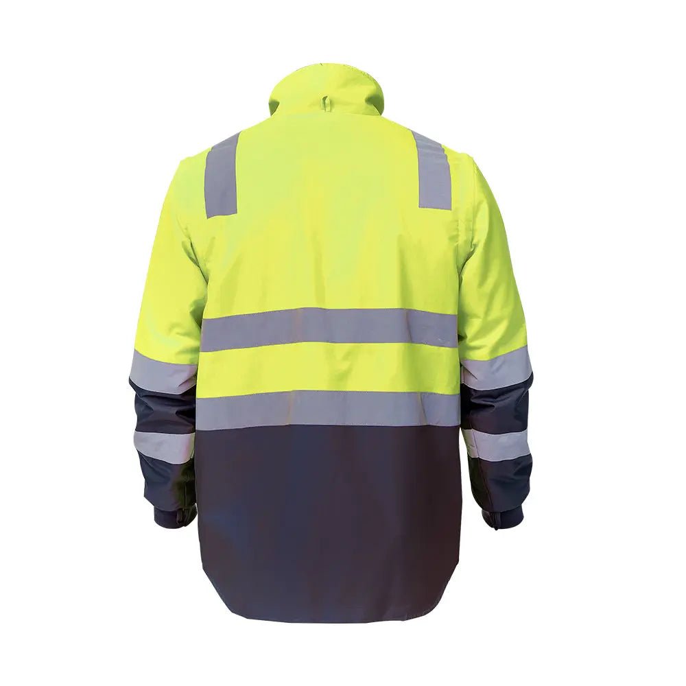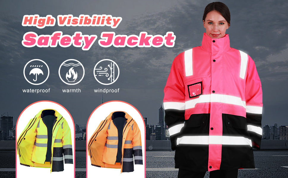 - NEON GLOW COLORED: Jacket comes in fluorescent color with a Black bottom to conceal soiling. It offers superior visibility and safety on the job, and is available in sizes Small to 5XL.