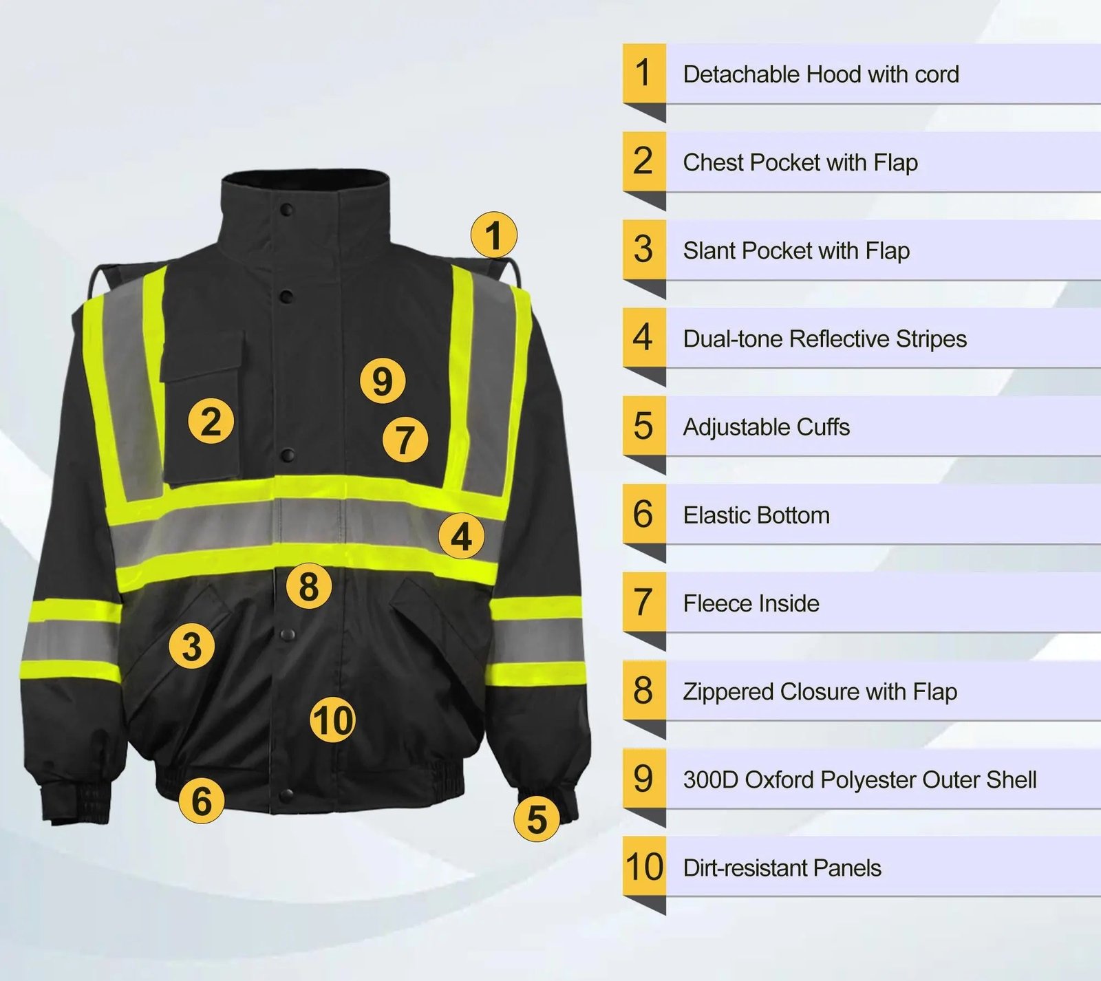 300D Oxford Waterproof FabricDetachable Hood with Adjustable Drawstring